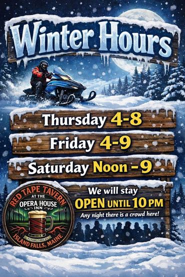 We will stay open until 10PM Friday & Saturday if busy!! 9PM otherwise. You can always call for current hours! 207-463-5024