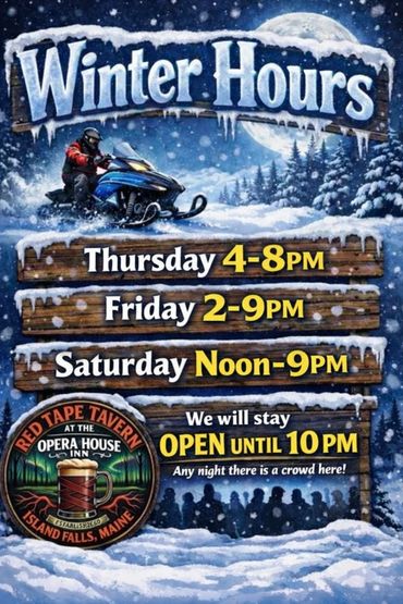 We will stay open until 10PM Friday & Saturday if busy!! 9PM otherwise. You can always call for current hours! 207-463-5024