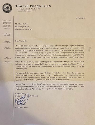 We’re writing to share an update regarding our ongoing efforts to purchase the parcel of town-owned land adjacent to our property. Unfortunately, we’ve received a formal reversal from the Town Selectboard, who have decided not to proceed with the sale.